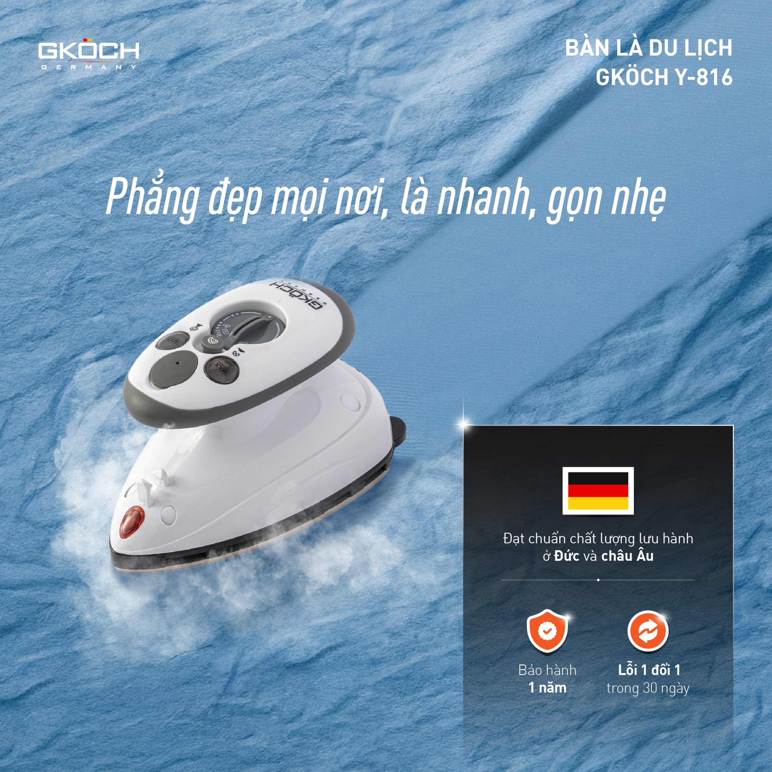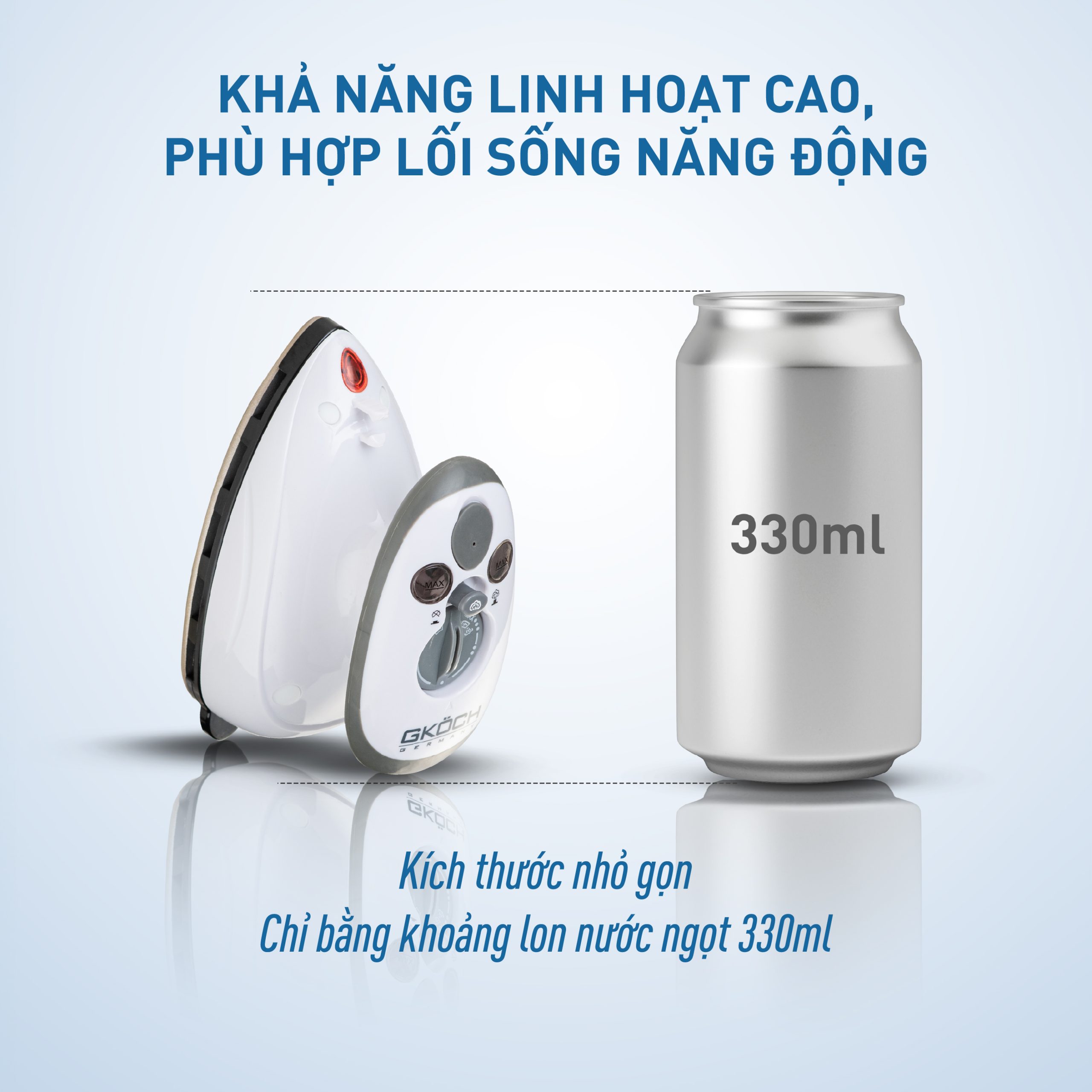 Nhỏ gọn, dễ mang theo, sử dụng đơn giản – không cần bàn ủi lớn, không phụ thuộc khách sạn, bàn là mini GKÖCH mang đến sự chủ động và yên tâm trong mọi tình huống, giúp bạn tiết kiệm thời gian và luôn tự tin mỗi khi xuất hiện.