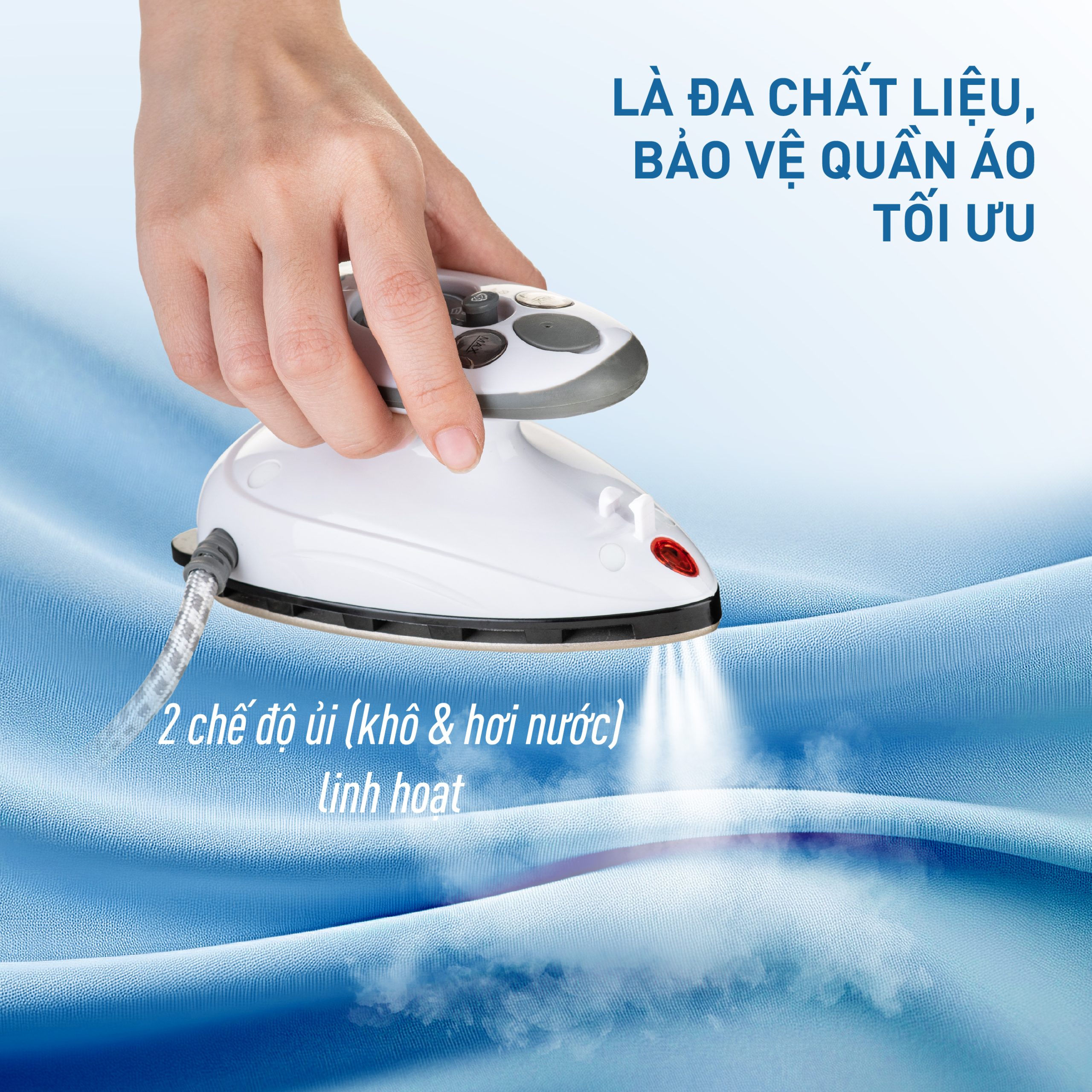 – 2 chế độ ủi (khô & hơi nước), 3 mức nhiệt linh hoạt, phù hợp nhiều loại vải
