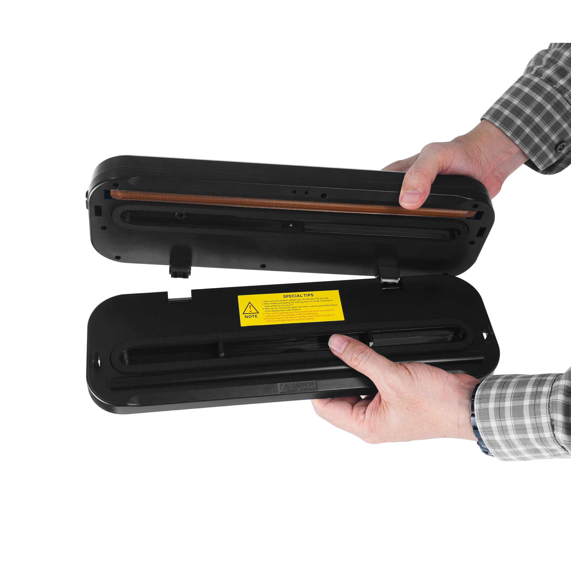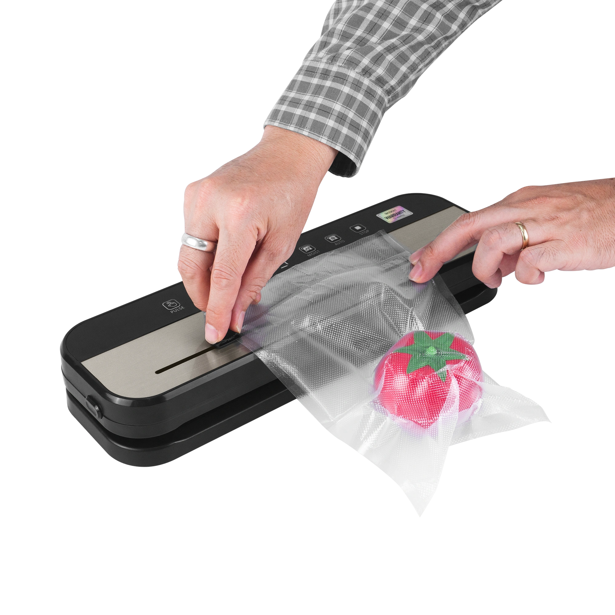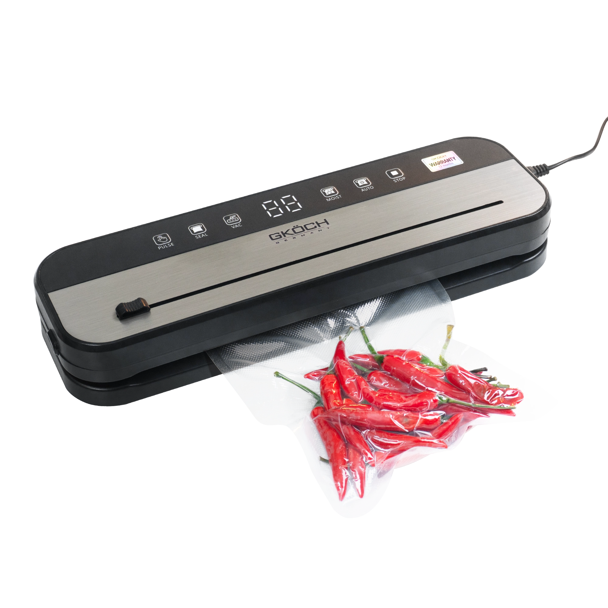 – Tùy chọn “Seal Only” cho phép hàn túi mà không cần hút chân không – lý tưởng cho đồ khô hoặc túi snack