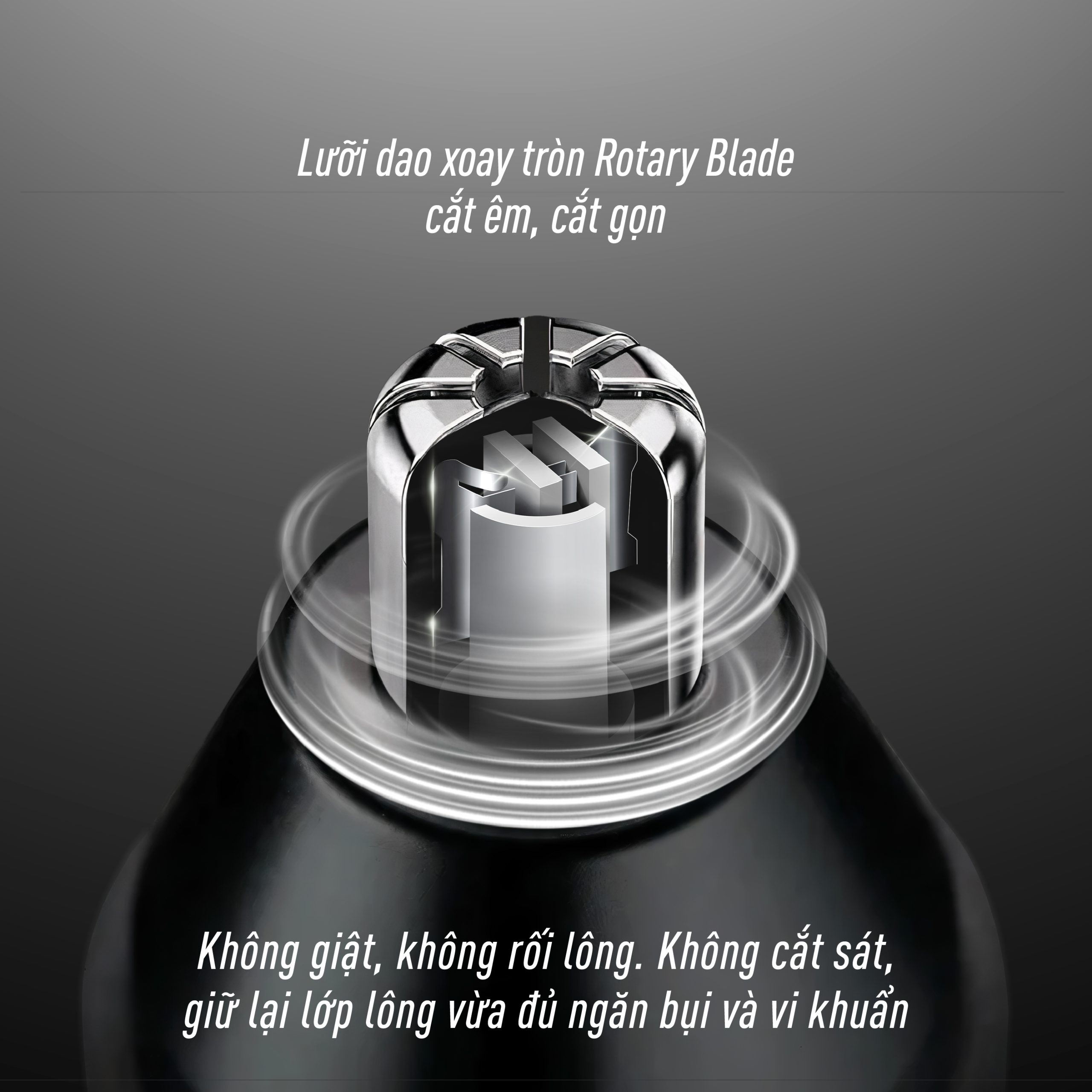 – Lưỡi dao xoay tròn Rotary Blade giúp cắt êm, cắt gọn, không làm giật hay rối lông gây đau rát